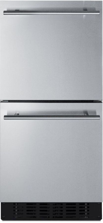 Summit's shallow depth series of built-in undercounter refrigeration brings full functionality to kitchen islands, wet bars, and other settings with space limitations. Model ASDR1524 is a 15" wide 2-drawer refrigerator sized under 18" deep. It comes in a 32" height to fit under lower ADA compliant counters, with adjustable legs and a sliding kickplate cover that also allows you to raise the overall height up to 34" to fit standard counter spaces.Read More