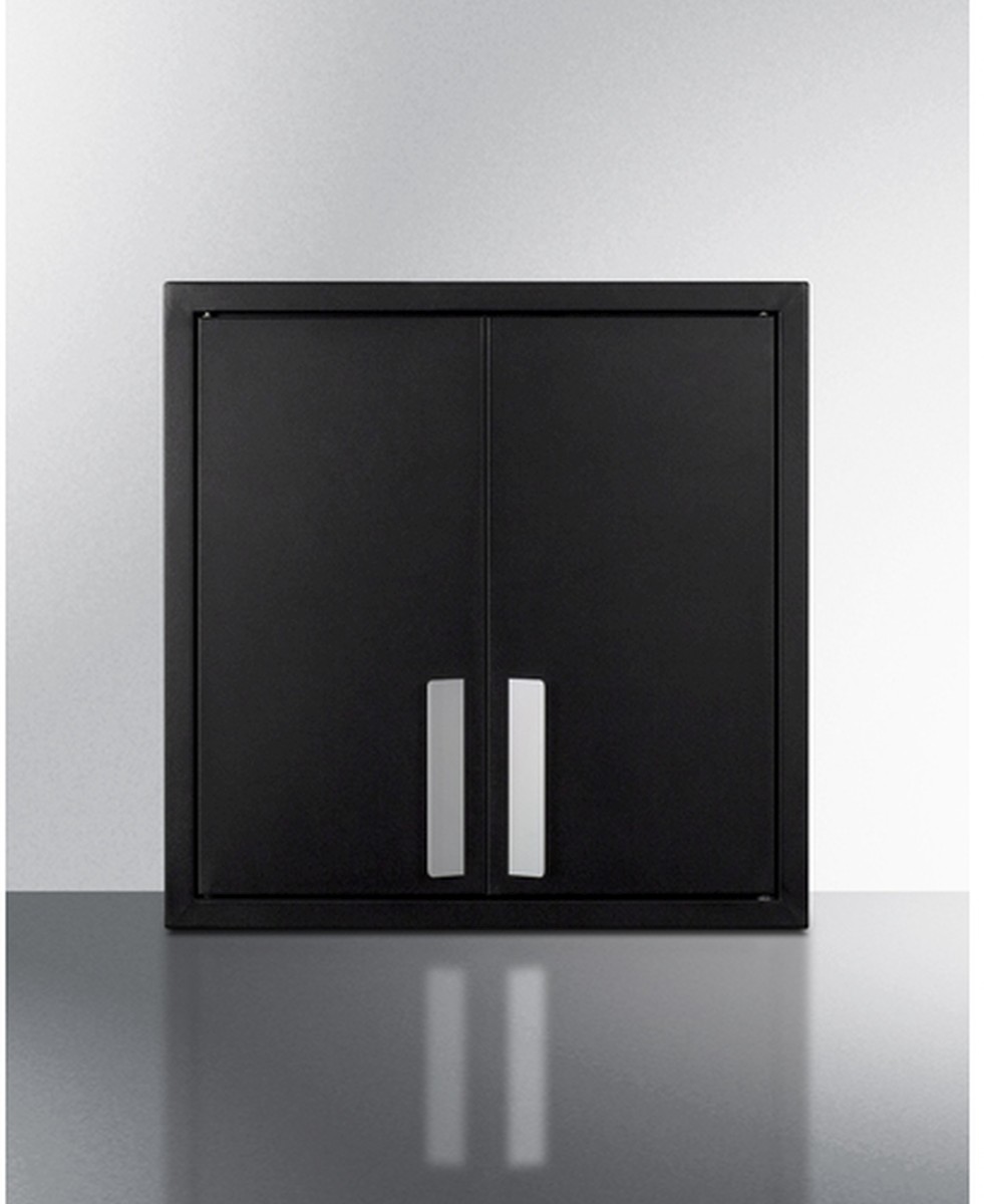Sized at 18" wide and 12" deep, the CAB18TALLBLK is perfect for smaller kitchen spaces. Constructed from powder-coated metal, it comes in a jet black finish with angled blade-style handles in brushed stainless steel for a modern look. The french door design makes it easy to store and remove contents as needed. Inside, two removable shelves allow you to accommodate a variety of sizes. The cabinet ships fully assembled with a mounting bracket and all the equipment needed for proper installation.