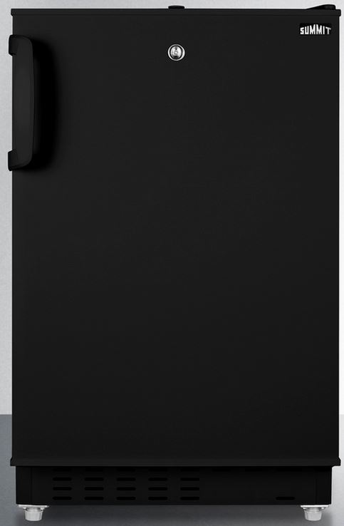 The fully finished textured black cabinet allows freestanding use, while the front-breathing system means this unit can be built-in with minimum clearance. The user-reversible door is 3" thick for efficient insulation, with a handle included for added convenience. This unit comes with a right angle cord to allow for easier placement without added depth. A factory-installed lock is conveniently located towards the top of the door to provide security as needed.