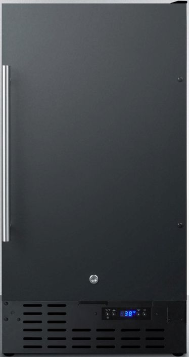 SUMMIT's selection of built-in undercounter refrigeration includes one of the industry's only complete 18" wide lines for the home. Sized just under 18" wide, the FF1843B is the perfect all-refrigerator for space-challenged kitchens. It comes in a jet black finish and can be used built-in or freestanding. The user-reversible door includes a factory installed front lock and pro style handle. Inside, the FF1843B utilizes automatic defrost operation for low maintenance use. Four adjustable chrome shelves accommodate a variety of sizes and LED lighting offers an efficient interior view. This unit includes a digital thermostat for optimum temperature management. Combine the FF1843B with its matching freezer, wine cellar, or beverage refrigerator. We also offer this model in stainless steel or with a panel-ready door. For a 32" high ADA compliant version, see the FF1843BADA.