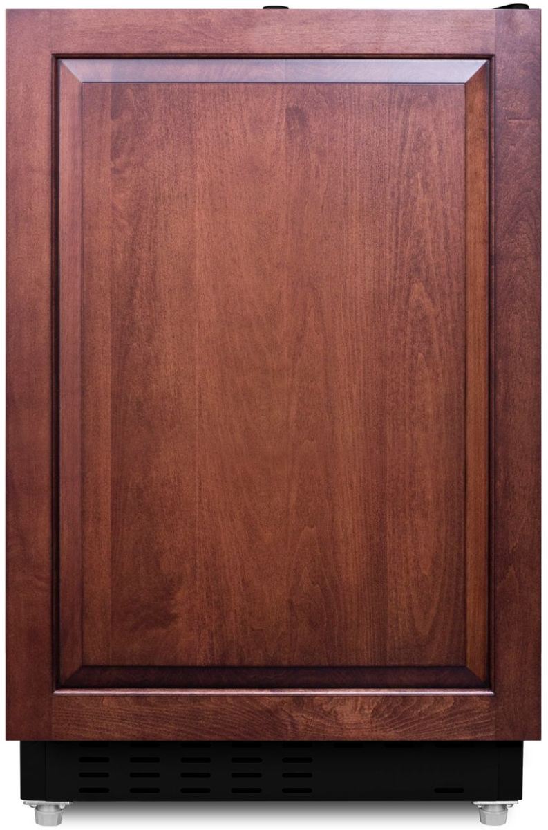 The fully finished textured black cabinet allows freestanding use, while the front-breathing system means this unit can be built-in with minimum clearance. The door is 3" thick for efficient insulation and features an integrated stainless steel frame designed to accept full panel overlays, allowing users to seamlessly blend the unit into their own cabinetry design (panel size: 19 13/16" W x 27 1/8" H). This unit comes with a right angle cord to allow for easier placement without added depth.